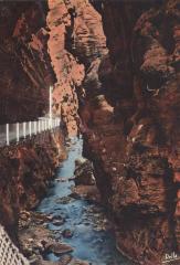Les Gorges du Cians (A.-M.). Taillées dans les schistes rouges, ces gorges grandioses offrent un aspect remarquable de couleur, ici la petite clue (A 832)