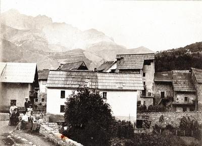 [La famille Ollivier sur le pont vieux à Entraunes]