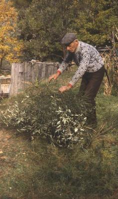 Assemblage de branchettes d'olivier à la Roquette-sur-Var avec une ligature de genêt.