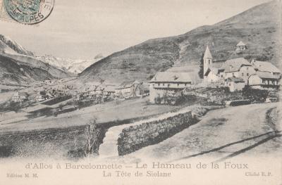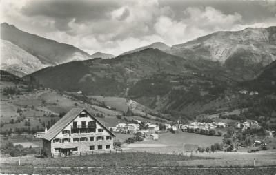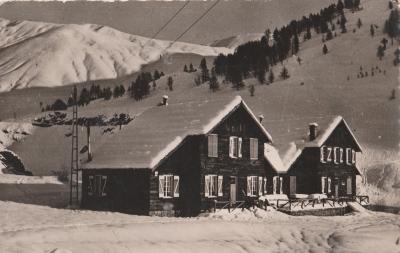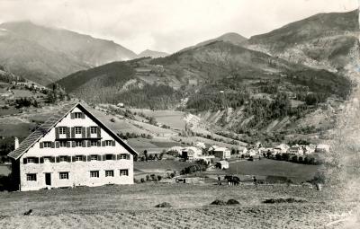 Les plus beaux sites des Alpes. - La Foux d'Allos (1650 m.) - L'Aiguille (2512 m.) - La Sestrère (2518 m.), La Siolanne [sic] (2910 m.), L'Hôtel du Relais, Les Champs de ski