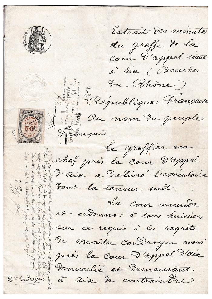 Extrait des minutes du greffe de la cour d 'Appel séant à Aix en Provence