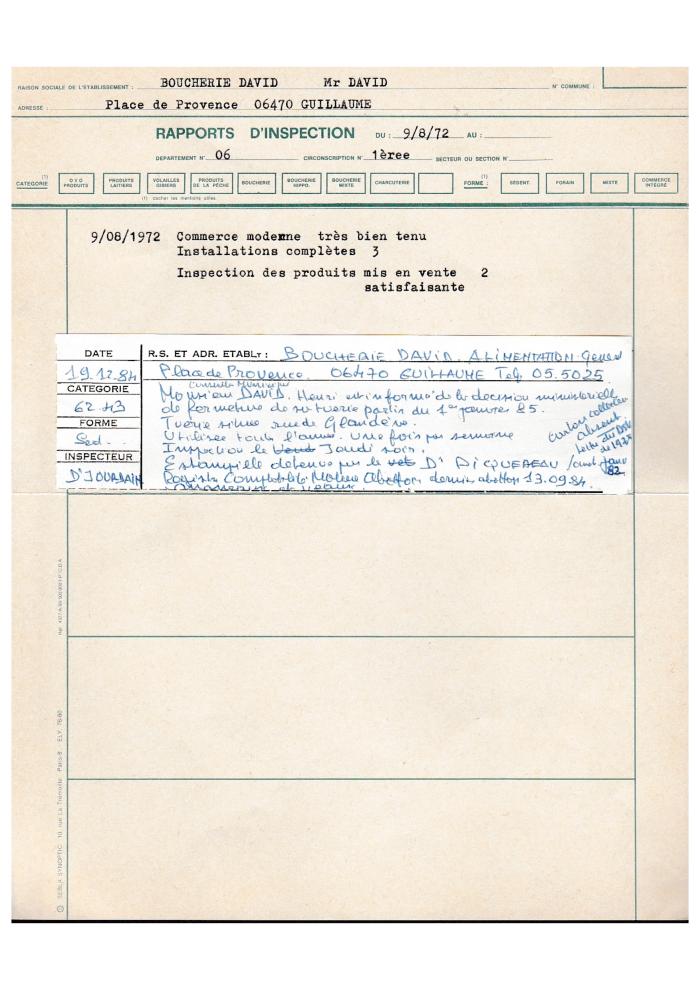 [Rapport d'inspection de la boucherie David à Guillaumes - 1984]