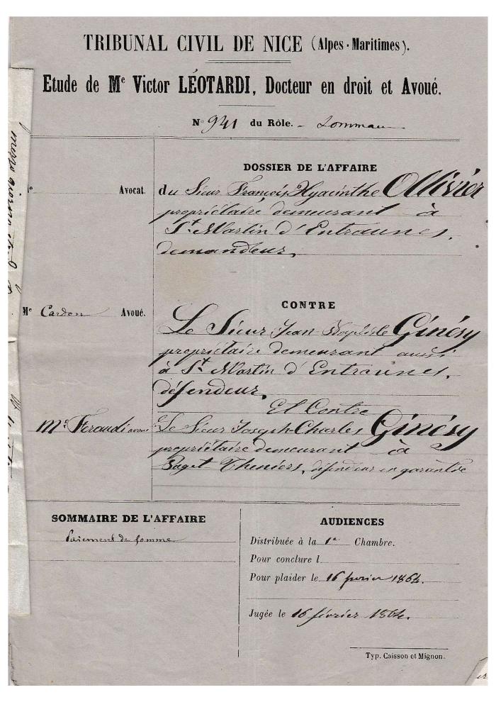 [Affaire François Hyacinthe Ollivier contre Jean-Baptiste Ginésy et Joseph Charles Ginésy - 1864]