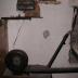 Description : Ensemble composé d'un transformateur en gros semi-ovoïde, avec poignée sup. fixe (18 x 10,5 cm, H : 11 cm) en acier peint ; d'un rhéostat parallélépipèdique (20 x 10 cm, ép : 6 cm) creusé d'un orifice rectangulaire (16,2 x 1,8 cm) dans le sens de la longueur, dans lequel coulisse un curseur en bakélite ; et d'une turbine. Celle- ci comprend un coffre en forme de disque épais (D : 25 cm, ép : 5,5 cm) reposant sur sa tranche. Le moteur est installé sur sa face arrière ; sur l'autre face est centré un orifice (D : 10 cm) pour la prise d'aire, au travers duquel on distingue la roue à ailettes de la turbine. De la partie inf. du coffre part un tuyau cylindrique (D : 8 cm) qui va sous le foyer de la forge (L env. 120 cm), avant de se redresser à angle droit approximativement au milieu de ce foyer. A 25 cm env. du départ, un autre en est issu, formant un angle de 115° env. avec le premier. Ce second tuyau (D env 3,8 cm) va sous la hotte de la forge, afin de faciliter le tirage.