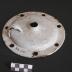 Description : couvercle galbé avec bouton de préhension et anse latérale, percé de sept trous.