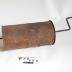 Description : Cylindre (L : 31 cm D: 16,5 cm) ayant une porte à glissière. Il est traversé en son centre par une tige de fer terminé en pointe d'un côté et en manivelle de l'autre. Cette tige était posée sur un support quadrangulaire.