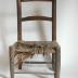 Description : Chaise basse (Ht : 28 cm) avec un dossier à double boiseaux (H : 67 cm). Les montants sont de section circulaire à l'exception d'un qui est de section rectangulaire et qui montre que la chaise a été réparée au moins une fois. Assise en paille de seigle.
