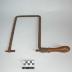 Description : Scie à cadre en U avec une poignée pyriforme dans le prolongement de la lame. La tension de la lame se faisait par une vis de tension à l'opposé de la lame.