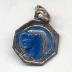 Revers en relief : Bernadette Soubirou priant la Vierge devant la grotte. Les deux faces sont peintes en bleu. Un anneau est fixé sur le côté supérieur et comporte un anneau libre.