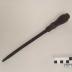 Description : Tournevis, profil à baïonnette terminé par une lame droite (Lg : 8 mm). Manche en réemploi, piriforme. Le manche est serti d'une virole au médian et à la base. La lame du tournevis est à soie noyée.