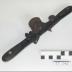 Description : Vastringue métallique à poignées droites striées. Les joues sont réglables à l'écartement désiré au moyen d'une molette. Le fer est maintenu par un contre fer triangulaire. Le fer est amovible en dévissant la vis qui maintient serrer le fer et le contre fer. Ce dernier est réglable en coulissant le long de la vis au moyen d'une encoche, tout comme le fer.