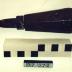 Description : Fer droit et plat s'amincissant vers la lame. La soie est noyée. Le manche est à six pans. Trois pans sont chanfreinés et évidés à la tête. Il est percé de part en part au 2/3 de la hauteur; Il est muni d'une virole et s'évase vers la tête.