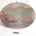 Description : Carton ovale avec une inscription à l'avers : "Spécialités soieries - Maison Renée 26 & 28 avenue de la Victoire - Nice" encadrée par un décor de perle. Au revers se trouve une représentation du grand Canal de Venise ou alterne gondoles et voiles latines dans un paysage d'hôtel particulier avec dans le fond la Salute. Cette représentation imprimée a été rehaussée par de la peinture. Le ciel a été repris avec des rehauts de gris et de rose. Des traits horizontaux afin de donner du relief au grand canal et des traits verticaux pour souligner l'architecture des hôtels.