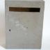 Description : Boîte parallélépipédique en bois peint en brun comprenant une porte et une ouverture rectangulaire dans la partie supérieure de la porte. (22 x 3 cm) Présence d'un trou de serrure pour y introduire la clé. Un anneau est fixé à la partie supérieure pour la suspension.