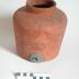 Description : Récipient sur plan circulaire (D : 15,5 cm D : au col 9 cm) à bords moyens galbés avec une encolure. Col droit 1,2 cm . Dans la partie inférieure est ménagé un orifice. Un robinet de plomb y était fixé et maintenu en place par une abondante coulure de plomb. Il a été par la suite scié.