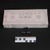 Description : Boîte en carton avec couvercle s'emboîtant par le dessus portant sur la longueur 2 encoches pour faciliter l'ouverture, on y lit le mention "reproduction interdite, art. 116" et toutes les inscriptions donnant le marque de fabrique et tous les renseignements concernant le produit, toutes les faces sont également ornées d'un dessin géométrique