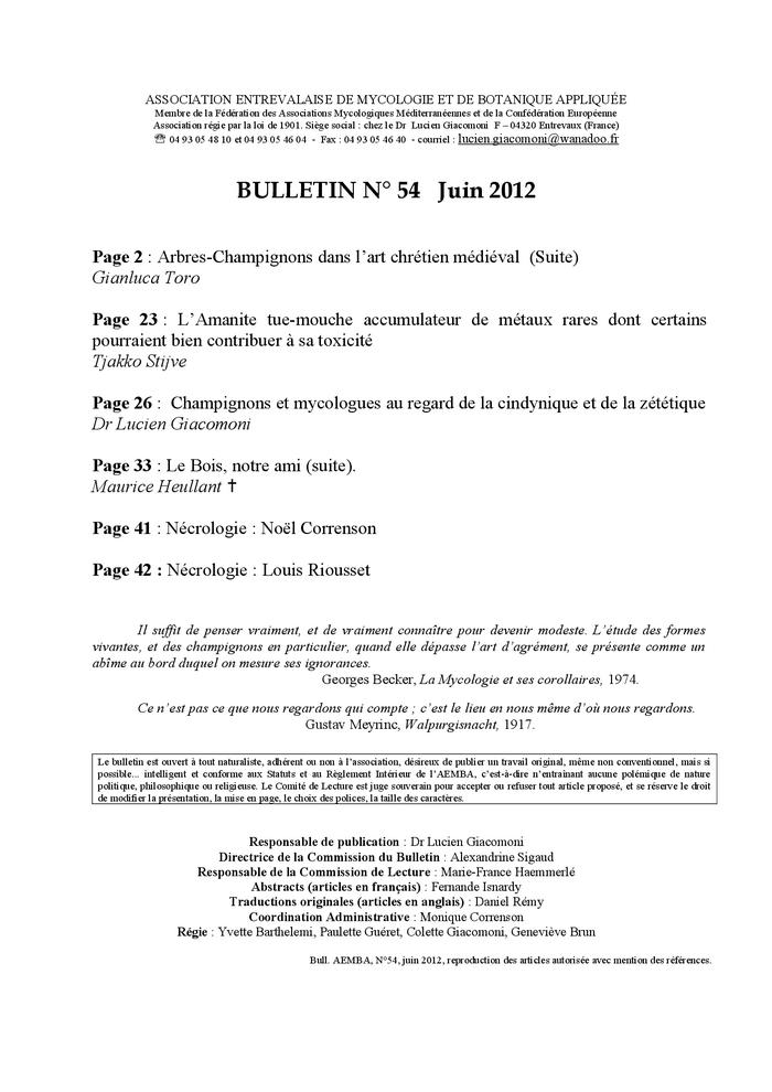 Bulletin de l'AEMBA (Association Entrevalaise de Mycologie et de Botanique Appliquée) ➜ Bulletin de l'Aemba n°54 -