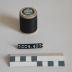Description : Bobine en bois sur laquelle est enroulé du fil. Les faces supérieures et inférieures de la bobine portent des étiquettes.
