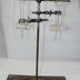 Description : Le support est en métal, tandis que les éléments principaux sont en verre. L’ensemble repose sur une base métallique lourde et stable, avec une tige verticale servant à fixer les éléments en verre à l’aide de pinces réglables. Il y a deux ballons en verre sphériques munis de cols et de tubulures en bas, chacun connecté à un robinet ou un dispositif de contrôle du flux.