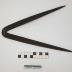 Description : Pièce de fer plat affectant la forme du "V" inversé, dont le coude est en lignes courbes, et les extrémités effilées. Ecartement des pointes : 19 cm.
