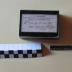 Une partie sert de receptable. Elle est complétée par un montage en carton. Celui-ci compose deux logements rectangulaires (L : 8 cm lg : 2,8 cm, Ht : 2,3 cm)