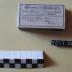 La partie supérieure dont la hauteur est de 0,7 cm s'emboîte sur la partie inférieure et sert de couvercle. Il est solidaire par un des grandes côtés. Le pourtour est noir aevc liseré blanc. Etiquette sur la face supérieure. La boîte contient un suppositoire emballé dans un papier fin.