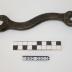 Description : manche courbe en forme de "S" aplati doté, à chacune de ses extrémités, d'une excroissance de forme elliptique, dans la partie extérieure de laquelle est pratiqué un orifice rectangulaire, au fond légèrement concave. Les deux orifices sont perpendiculaires au grand axe de cette ellipse : Lg orifice A : 2 cm, orifice B : 1,8 cm