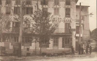 1255 - La Bollène Vésubie, Station estivale, 650 m - Pension Restaurant Rustique - ensemble de la Pension dominant les Alpes
