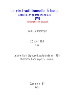 La vie traditionnelle à Isola avant la 2e guerre mondiale (V) TRANSCRIPTION cassette n° 30