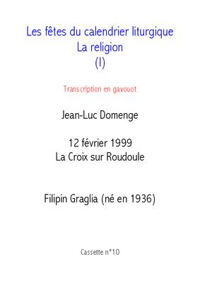 Les fêtes du calendrier liturgique - la religion. (1) TRANSCRIPTION cassette n°10 (Partie 1 et 2)