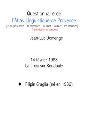 Questionnaire de l'Atlas Linguistique de Provence (le corps humain - la naissance - l'enfant - la mort - les maladies) - TRANSCRIPTION de la cassette n°3 (Partie 1 et 2)