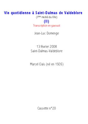Vie quotidienne à Saint-Dalmas de Valdeblore (II) - [TRANSCRIPTION cassette n°20 (Partie 1 et 2)