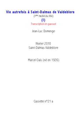 Vie autrefois à Saint-Dalmas de Valdeblore (I) - TRANSCRIPTION cassette n°21a (Partie 1 et 2)
