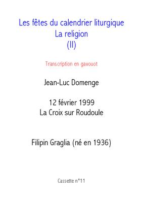 Les fêtes du calendrier liturgique - la religion. (2) TRANSCRIPTION cassette n°11 (Partie 1 et 2)