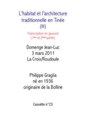 L'habitat et l'architecture traditionnelle en Tinée - TRANSCRIPTION de la cassette n°23 (1ère et 2ème partie)