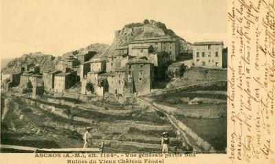 Ascros (Alpes-Maritimes), Vue générale et Ruines du Vieux Château féodal (Partie Sud).