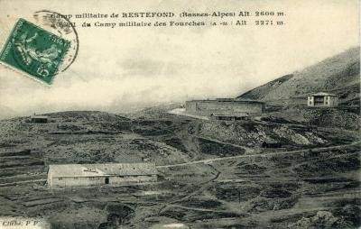 Camp militaire de Restefond (Basses-Alpes) Alt. 2600 m. ) 8 kil. du camp militaire des Fourches. (A.-M.) Alt. 2271 m.