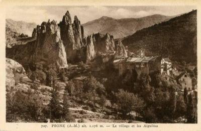727 Péone (A.M.), alt 1176 m. Le village et les aiguilles. FL