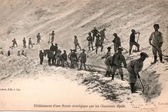 Déblaiement d'une route stratégique par les chasseurs alpins