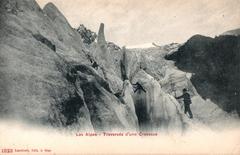 1823 - Les Alpes - Traversée d'une crevasse
