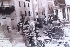 Procession devant l'hôtel de Beuil avec une bannière dédiée à ND de Lourdes