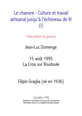 Le chanvre - Culture et travail artisanal jusqu'à l'écheveau de fil - TRANSCRIPTION de la Cassette n° 8 (1ère et 2ème partie)