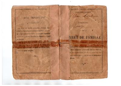 Livret de famille de Boutin Victorin et Trouche Léonie délivré à Sauze - 1906