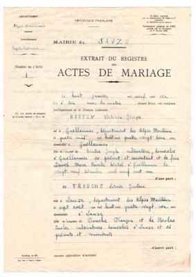 Acte de mariage de Boutin Victorin et Trouche Léonie à Sauze - 1906