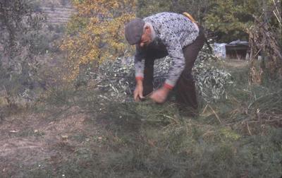 Assemblage de branchettes d'olivier à la Roquette-sur-Var avec une ligature de genêt.