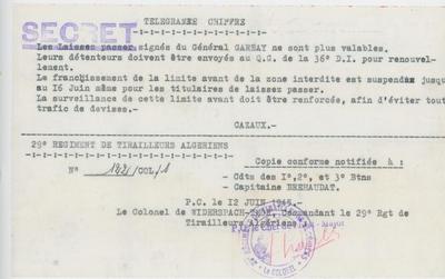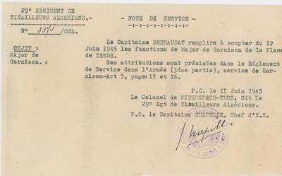 29ème Régiment de Tirailleurs Algériens - Note de service (4) - 21 Mai 1945