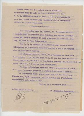 Compte-rendu sur les opérations de patrouille - Menton 1944