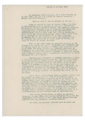 Rapport à Monsieur le colonel Chasuble, Commandant lrd F.F.I des Alpes-Maritimes à Nice -