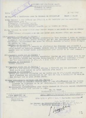 Au sujet de la Conférence avec le colonel de Widerspach - 31 mai 1945