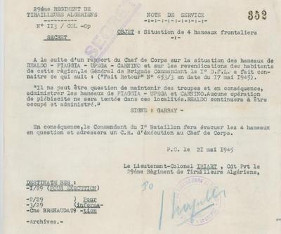 Détachement d'Armée des Alpes - Note de service (1) - 5 mai 1945